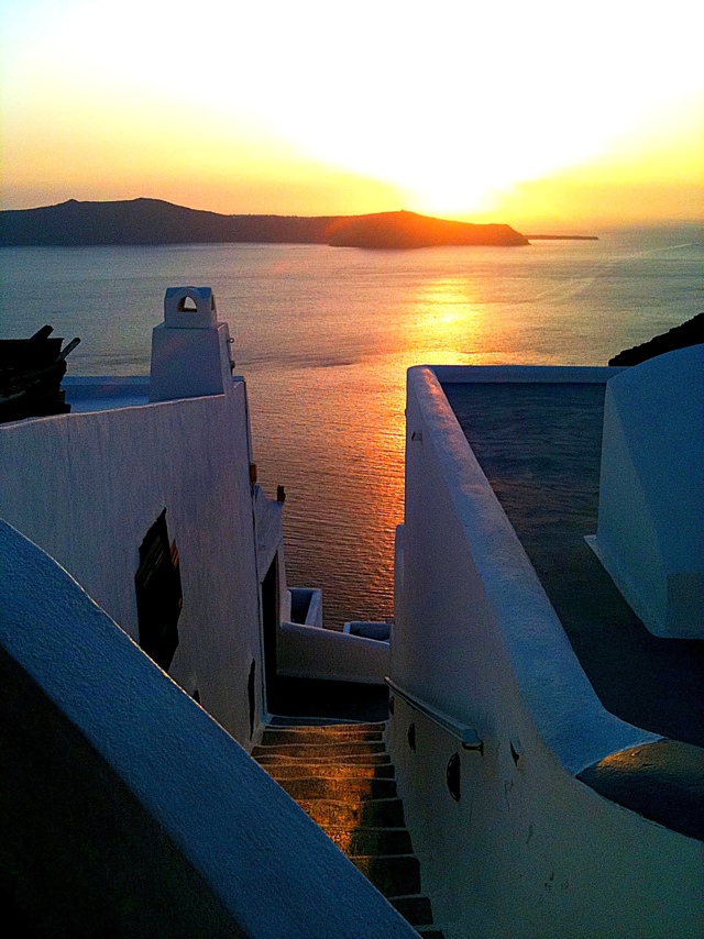 I hate flying. It’s like being squashed into a cigar tube and fired from a cannon. We were aimed at Athens and bounced briefly off Belgium. Santorini is in the Greek archipelago and it’s famous for being the most beautiful island with the best sunsets on Earth. They have Wi-Fi!