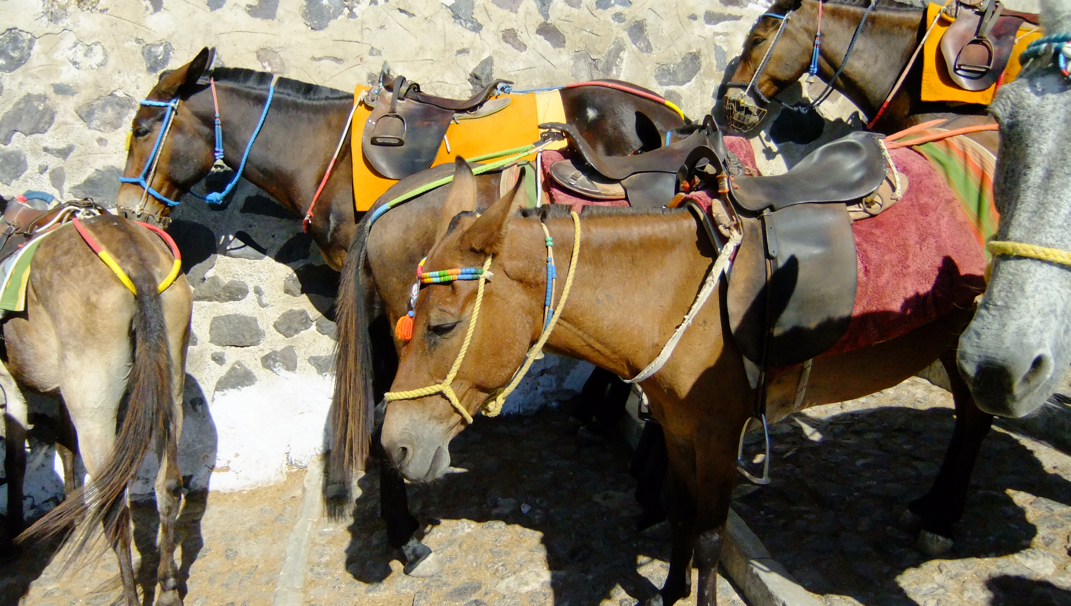 Let’s not go there. We had to get on the donkeys because the cable cars had queues a mile long and full of Americans complaining loudly about donkey shit. The poor creatures were sweating, bleeding and exhausted. That’s the donkeys, not the Americans. I tried to be nice to mine which had scars on it’s snout from the wrangler’s stick, but it obviously hated people, full stop. Very sad. I saw one eating dust out of desperation…
